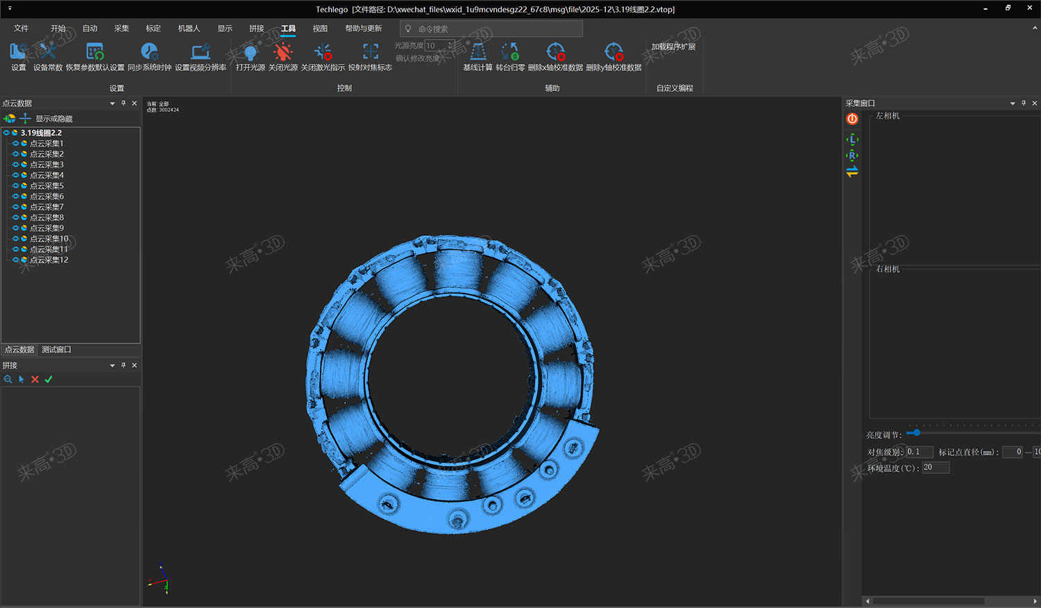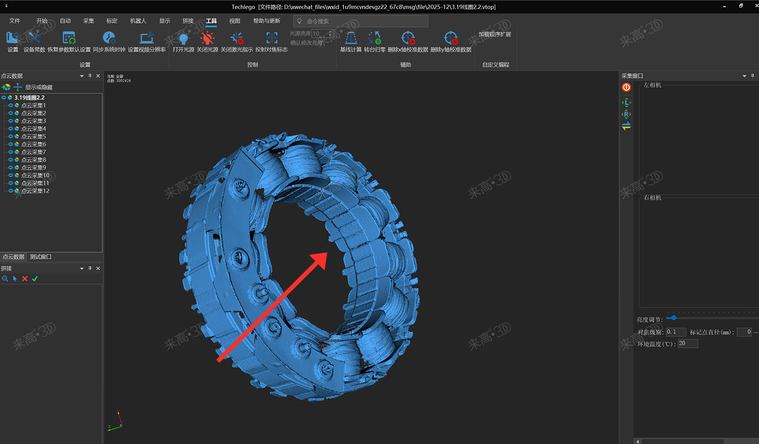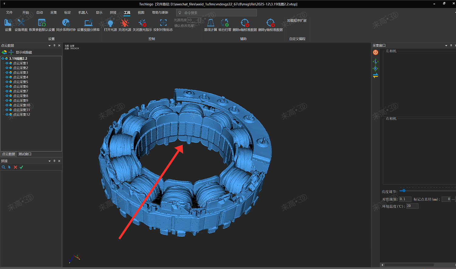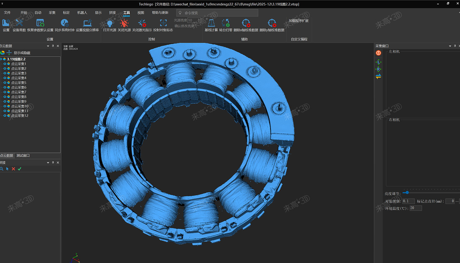 为突破上述瓶颈,本案例选用来高科技(天津)有限公司的G5Q高精度三维扫描仪,搭配Techlego 2025软件系统,实现对线圈的无标记点、高细节、非接触式完整扫描与智能检测。